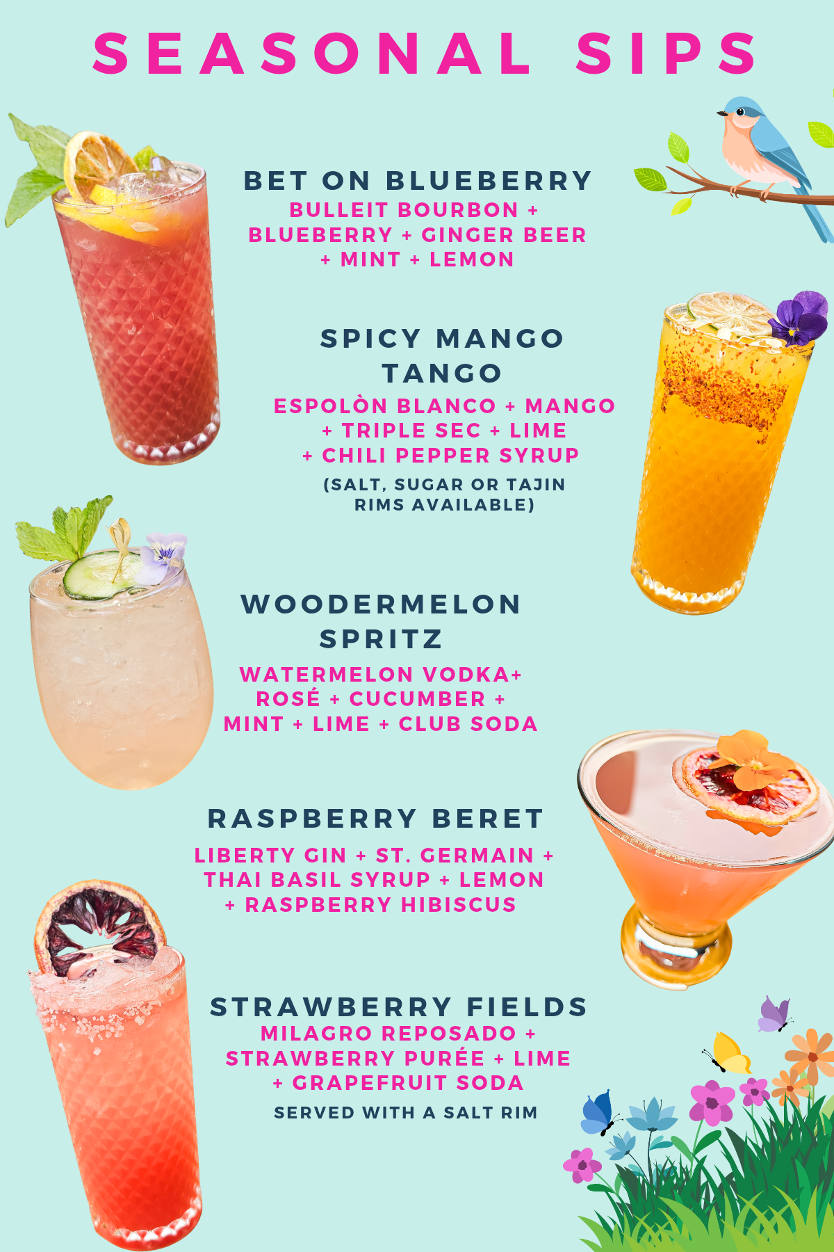 Spicy Margarita Infused Jalapeño Tequila, Triple Sec, Lime Juice & Sour Mix |